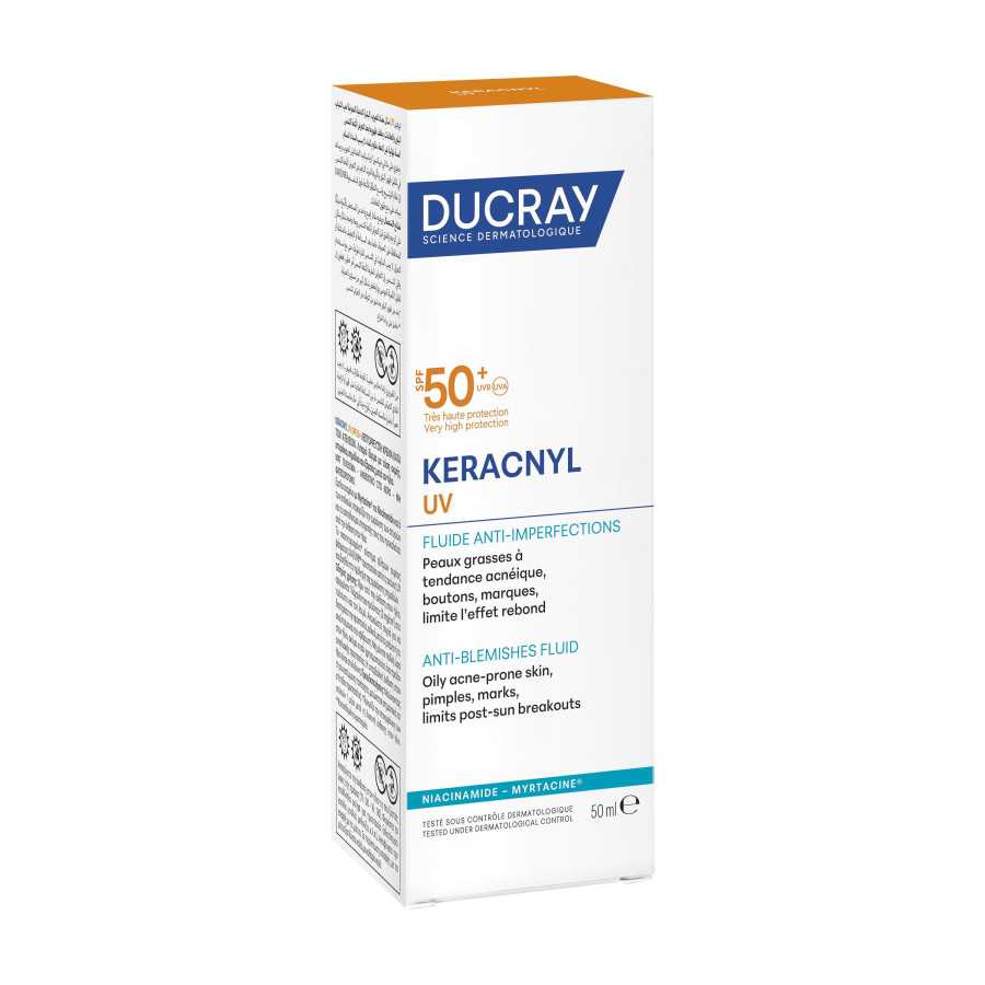 • KERACNYL UV Anti-blemish Fluid is an anti-blemish treatment with SPF50+ sun protection, with patented UVA/UVB filters.